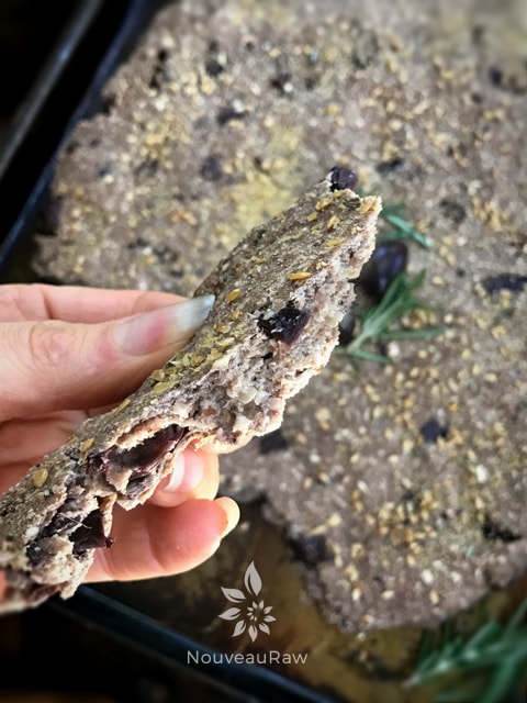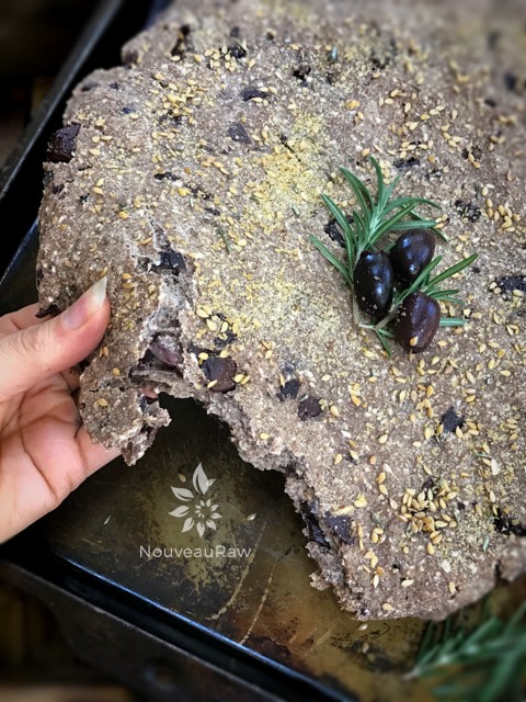I use to bake a gluten-free version of this bread. I use to take the pan straight from the oven, right to the table… placing it in the center where everyone would reach in and tear off a chunk to enjoy with their meal. I wanted to recreate that with a raw version.