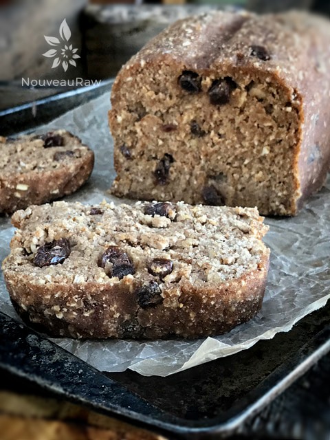 raw vegan gluten-free Sunday Morning Bread served in baking pan