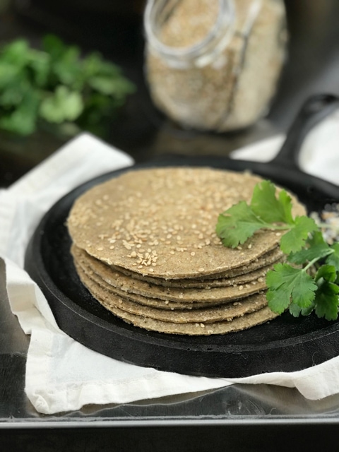 Good ole psyllium husks. I had to squeak in a few tablespoons of psyllium to help give the bread a little loft and sponginess. Hmm, is that an odd description? Sponginess? Well, regardless, that is what it does in this recipe. Of course, these breads are not thick, they weren’t meant to be, but they do have a nice loft to them. To learn more about psyllium, please click (here).