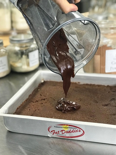 • Spread out gently and evenly covering the brownies from one edge to the others.