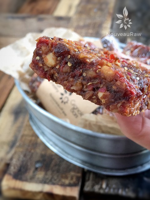 I can’t say that I am yet a huge fan of goji berries on their own, but I do love them in recipes… this granola bar is one of them. I whipped these up and shipped them off to my long-haul trucking dad. He needs foods that are filled with nutrients, a good source of fiber, and high in antioxidants. I don’t want him motoring down road munching on empty calories and nutrient-void foods… so I do my best to keep him stocked with healthier foods. I later got a call from him letting me know that these have been one of his favorite bars to date. :)