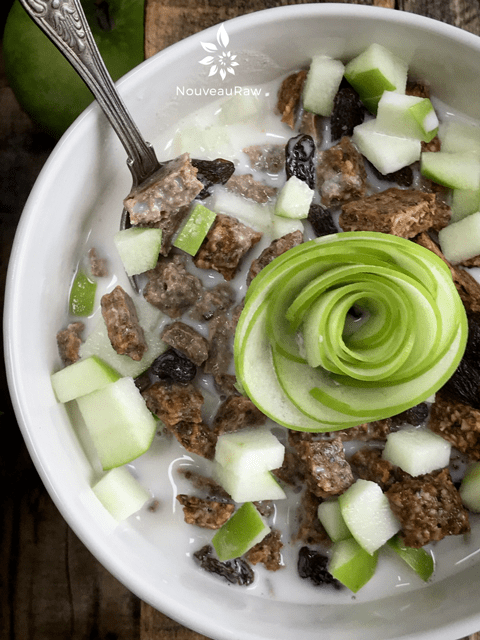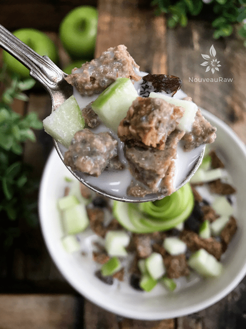 I receive emails on a regular basis from readers who ask for advice on what raw food staples would be quick and easy. Two words that we all love when it comes to food prep, huh? So, presenting on the center stage… a delicious cereal that will keep for several weeks in the pantry or for months in the freezer.