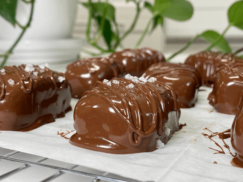 The mouth-watering chocolate, sweet coconut, and crisp whole almonds—all packed into one INDESCRIBABLY DELICIOUS bar. And to think, it took Hersey’s all of the following ingredients to create the Almond Joy: corn syrup, milk chocolate (sugar, cocoa butter, chocolate), milk, lactose, milk-fat, nonfat milk, soy lecithin, PGPR, coconut, sugar, almond roasted in sunflower oil, palm kernel & oil, cocoa, milk, salt, hydrolyzed milk protein, AND sodium metabisulfite. And all it took me was; dates, coconut oil, coconut, almonds, and chocolate. I think they hired the wrong recipe developer.