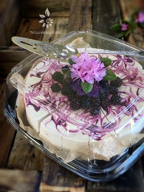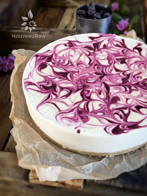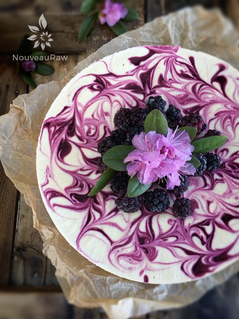 This raw blackberry lemon cheesecake recipe is made with all natural ingredients and is gluten and dairy free! It has a rich and creamy cashew coconut base that is sweetened with maple syrup and flavored with fresh squeezed lemon juice. Add in a swirl of blackberry sauce and you have a masterpiece just waiting to be shared amongst many.