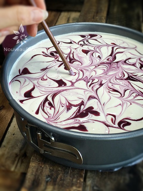 - Do this all over the cheesecake, as much as you want. Â The more you use, the more color that will be in the cheesecake.