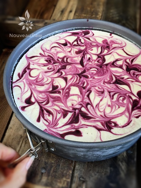Hi Amie sue, I made the cheese cake again but in a 10 inch pan and it was the perfect hight! I added maqui berry powder to the filling and used raspberries instead of blueberries (but it didn’t work out too well as it wasn’t thick enough it I still manger to swirl it) thanks again for your amazing recipe!! X