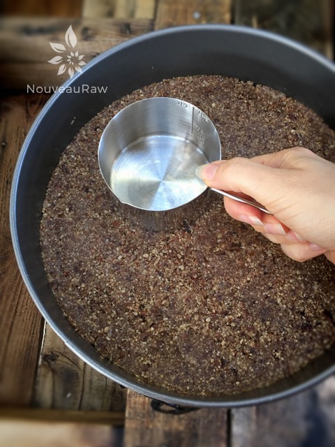 - Press the crust mixture into the bottom of the pan. Set aside while you make the filling.