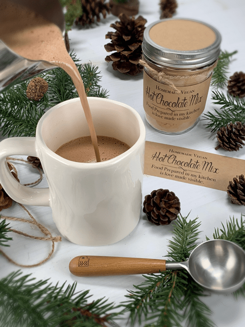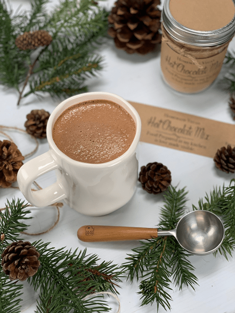 Are you aiming for a frothy mustache after you take a sip of your hot chocolate? (giggles) If so, the blender is your friend. You can blend and heat the hot chocolate mix and milk in a high powered blender instead of a pan on the stove top. Even if you heat the hot chocolate in a pan, pour it into the blender and blend on high for about thirty seconds. This will create a really frothy drink. Be careful when blending hot ingredients. Make sure that the lid is vented so the lid doesn’t pop off. I go as far as draping a dishcloth over the top while it blends just to be safe.