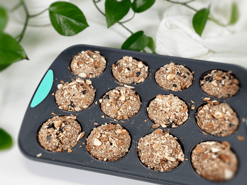 - Psyllium husks are added to give the muffins a spongy, bread-like texture.