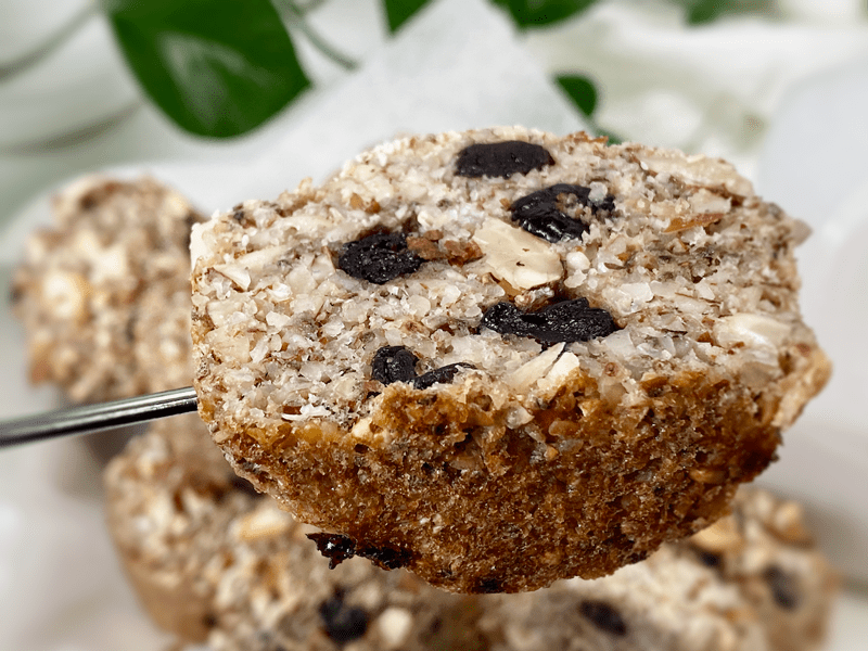 These are amazing muffins. The texture is just right, moist but not soggy. You wouldn’t know they have no flour or oil!