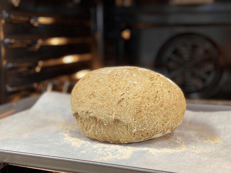 - Shape the dough into a round or oblong shape and place it on the baking sheet. After I shaped the bread, it measured 6.25″ x 4″ and once it was done baking, it measured 7″ x 5.5″. (You don’t have to aim for this, just a point of reference.)