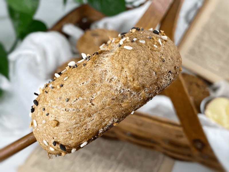 These bagels have a gorgeous golden crust, a light chewy interior, and a flavorful topping that keeps you wanting more. They are very filling, so don’t let their size fool you. Good things truly do come in small packages. You can enjoy these right out of the oven, tearing off bite after bite, or if you have patience, allow them to cool enough to cut so you can create an open-face sandwich with your favorite fillings.