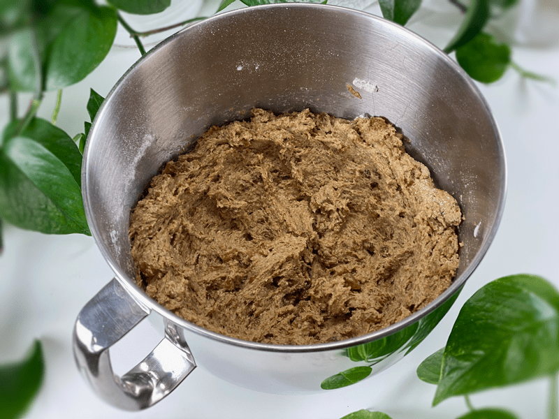 - Using either a hand mixer or a free-standing mixer with dough attachments, knead for 5 minutes (set a timer on your phone) to ensure that it gets kneaded enough (don’t we all love feeling needed?).