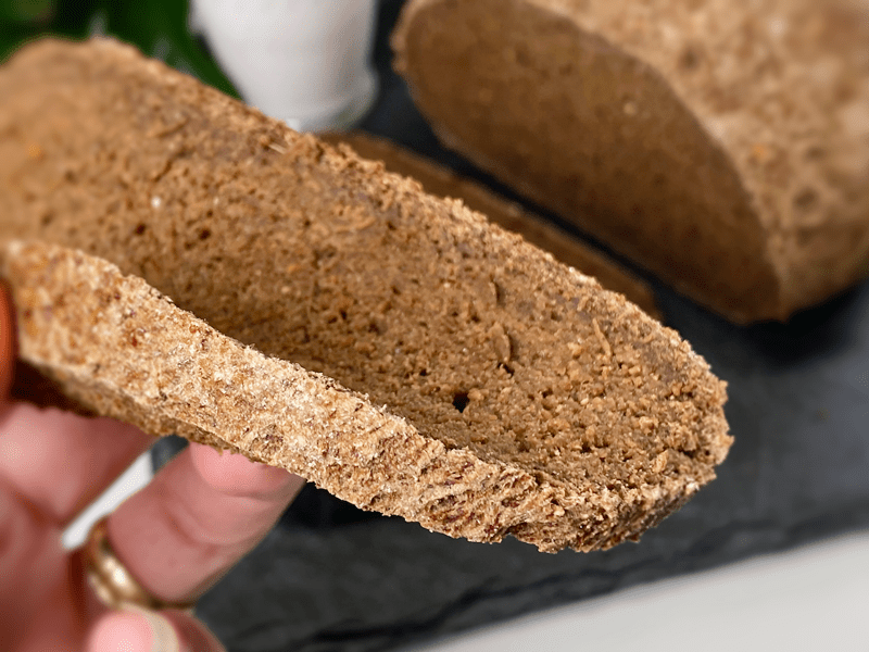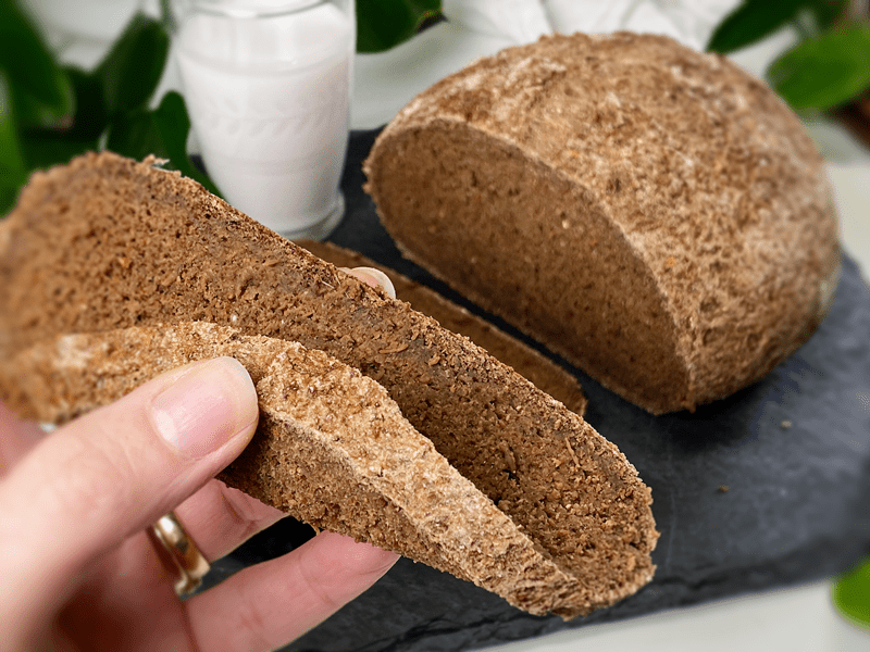 Quick side story — My first attempt at this bread was a DUD! I mean a REAL dud. It didn’t rise, it was heavy like a brick, and it had a funky taste. I figured out the undesirable texture… I tested out a different gluten-free flour blend (should have known to stick to my tried and true blend), but the odd flavor and lack of loft stumped me.