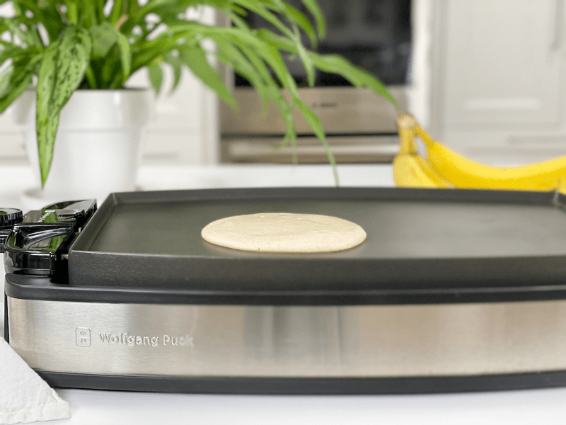 - Pour the batter onto the pancake griddle, making whatever size you want. Just don’t make them really thick, or they will be difficult to cook through.