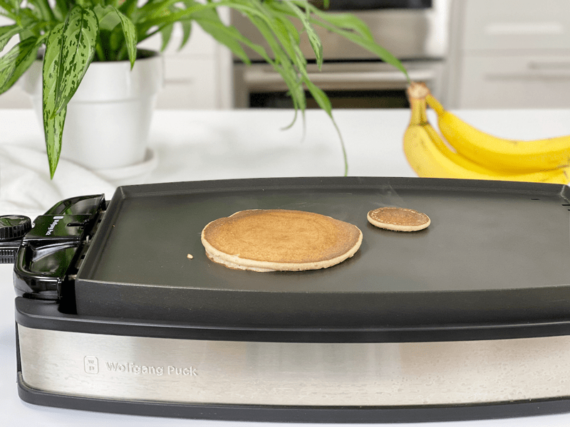 - Turn the pancake griddle to 350 degrees (F) and allow it to reach cooking temperature.