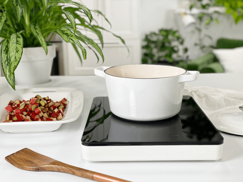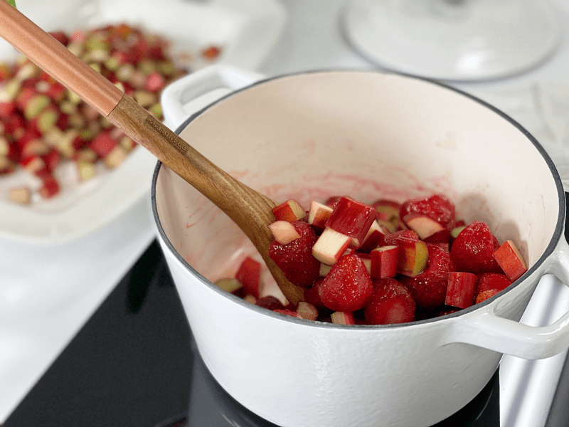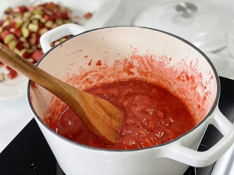 - If you don’t have access to fresh strawberries or rhubarb, you can use frozen. I used frozen strawberries and put them in the pot with the rhubarb while they were frozen. By nature, the rhubarb will take longer to cook than the strawberries, so adding them frozen balanced the cooking time.