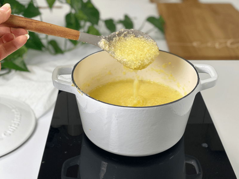 • If any lumps form, grab a whisk and give the polenta a good beating.