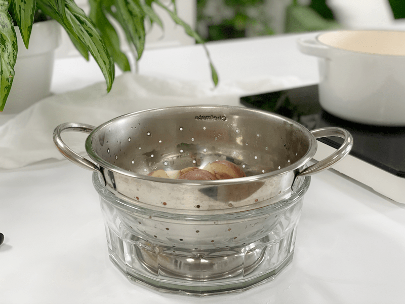 - Place a colander in a large bowl and drain.