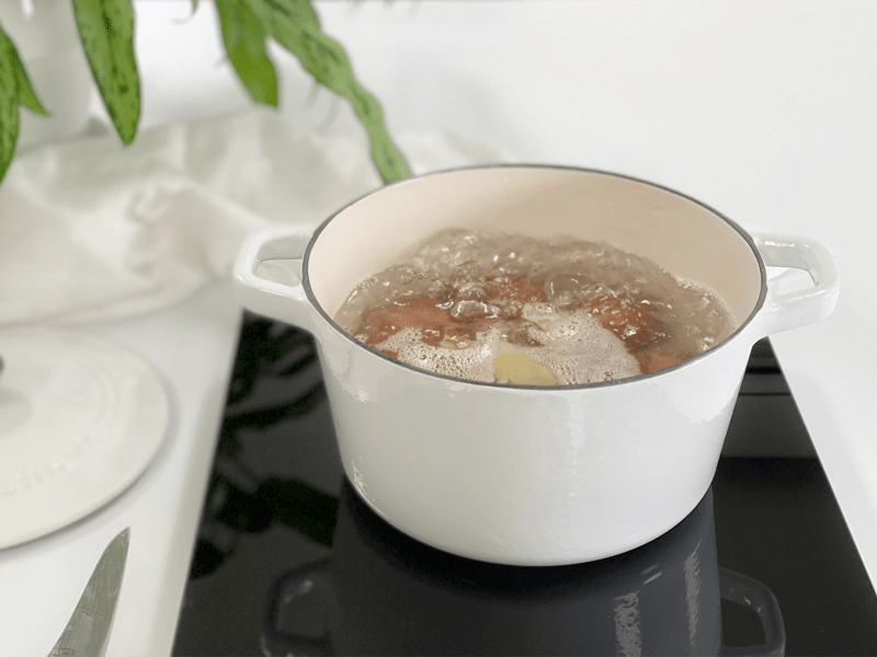 - Cook on high to bring the water to a boil, then reduce the heat to medium-low or low, bringing the water to a gentle boil. Cover the pot with a lid.