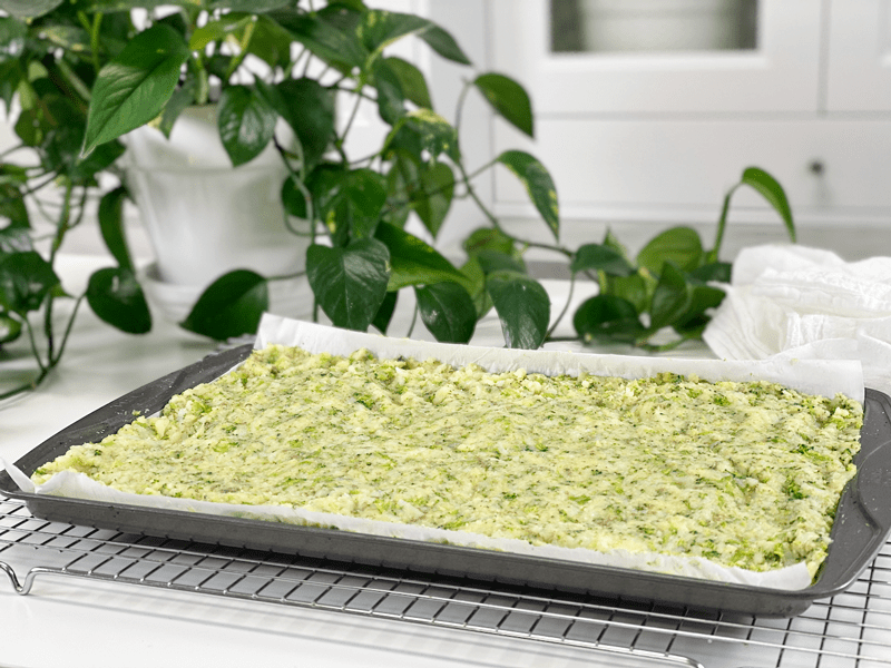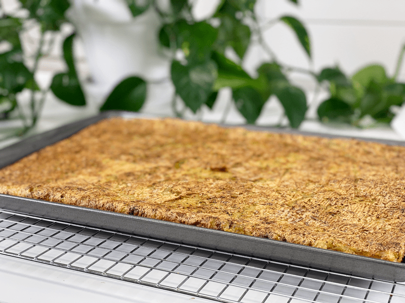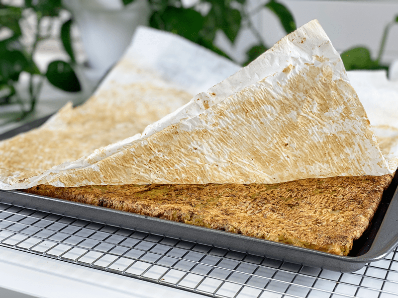 - Bake in the middle rack until crispy and cooked through; the timing will depend on how thick you make it. Flip the potato sheet over about halfway through the cooking time. It should nice and brown on the bottom before you flip it. If you want it to be extra crispy, you can broil it for a little bit. I suggest keeping a close eye on it while broiling, so it doesn’t burn.