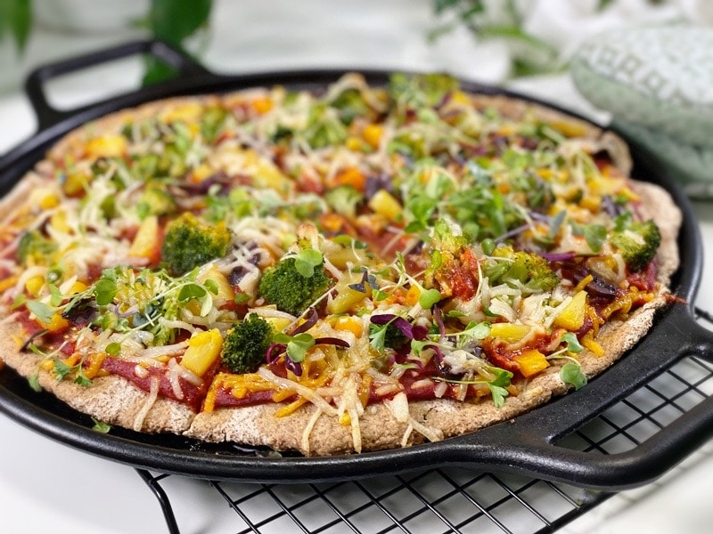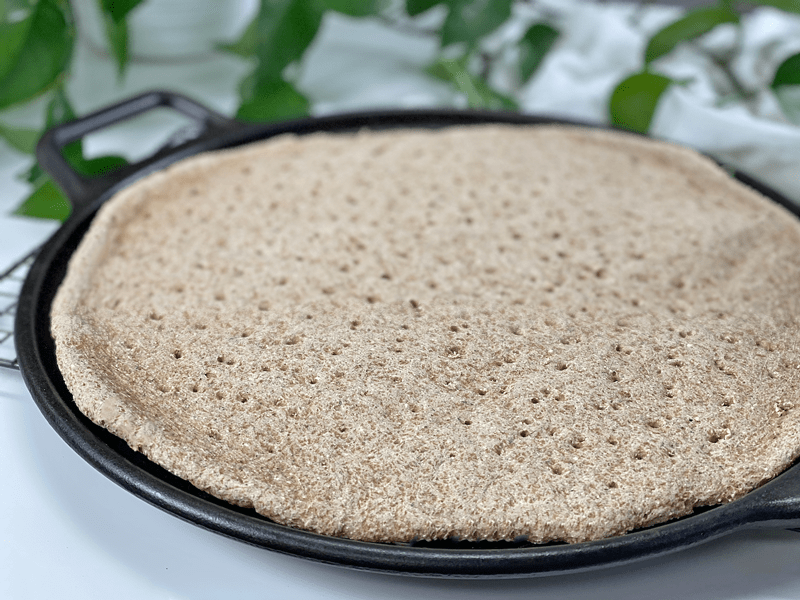 Pizza sort of disappeared from my culinary vision for over ten years (after going gluten-free and vegan). But in the past year (2020), I began to dabble more and more with gluten-free, vegan, oil-free, and yeast-free crusts. To date, this crust is our all-time favorite! It is thick but not too thick, it is chewy but not doughy, it’s hardy and can handle just about any weight-load of ingredients you put on it, the bottom is firm, and the crust has a lovely crunch that makes your ears perk up with delight.