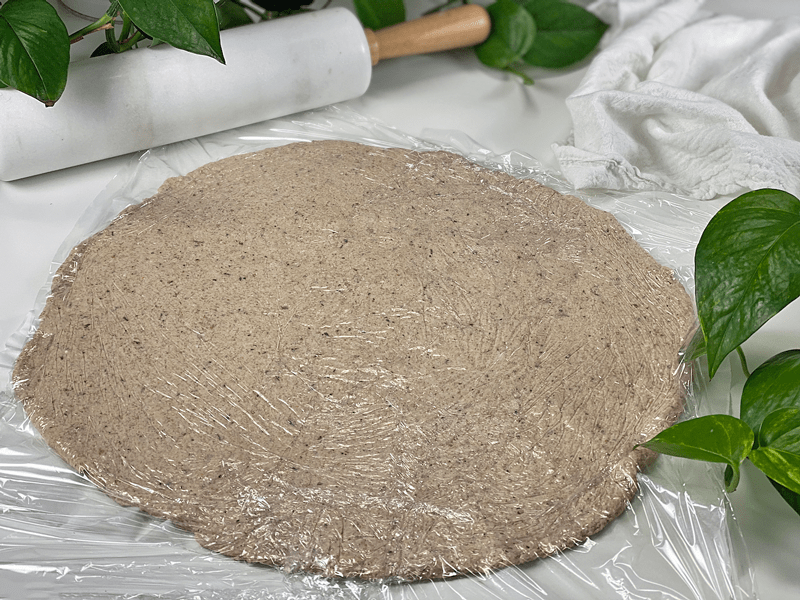 - Once done rolling, remove the plastic wrap and pierce the complete top of the dough with a fork, or if you have a dough docker, use that.