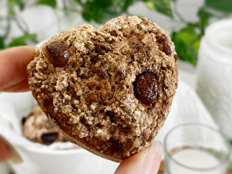 Lately, I have been sticking to the same bread-like recipe base for several reasons: it works, the different flavor combinations excite the tastebuds, and it is based in whole foods that don’t include gluten, nuts, oil, eggs, yeast, or refined sugars. Plus, I have to admit, I am all about simple recipes right now. These muffins are fuss-free, easy to make, and come together in one bowl (food processor bowl). These would be splendid to serve during your holiday celebrations or family gatherings. Where one or two shall gather… Chocolate Chip Cranberry Muffins should be enjoyed!
