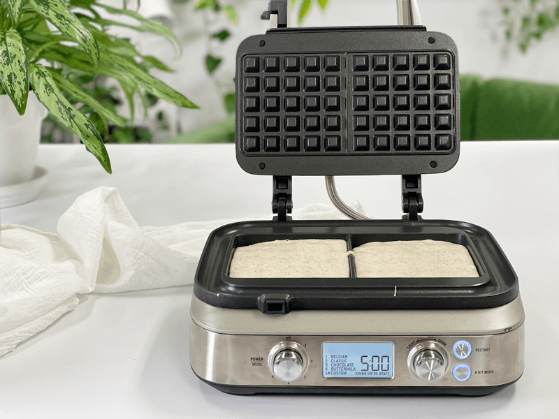 Take a look when you open the waffle iron. If the waffle is splitting in two, it hasn’t cooked long enough. Close the lid and wait another minute.