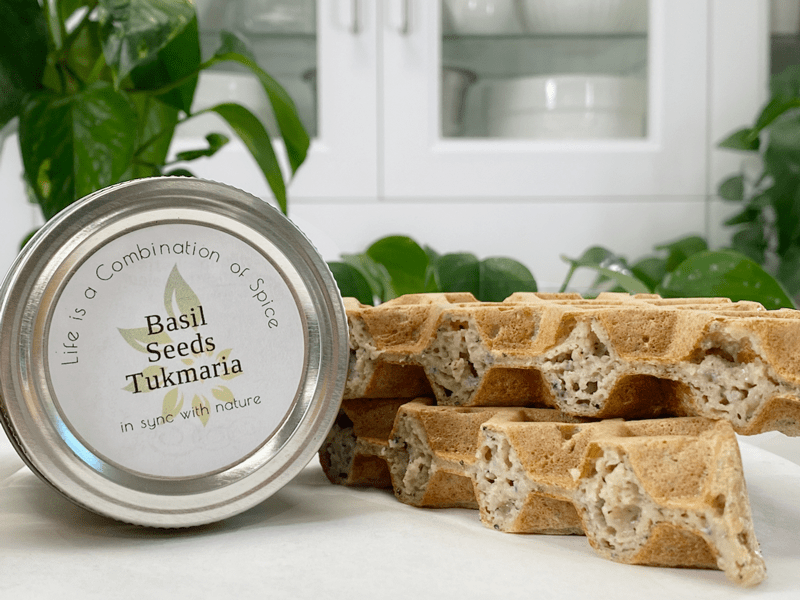If you decide to use basil seeds in the recipe, the waffle batter will thicken and create a more bread-like waffle (perfect, if you ask me).