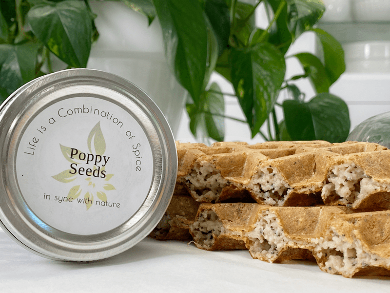 When I used the poppy seeds instead of the basil seeds, the batter was a bit thinner and created a lighter-textured waffle.
