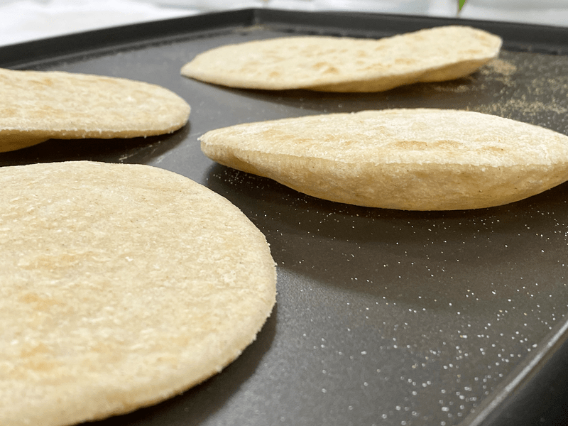 - They will puff up–don’t press the air out, just let them do their thing. As they cool, the air will release, giving them that authentic tortilla appearance.