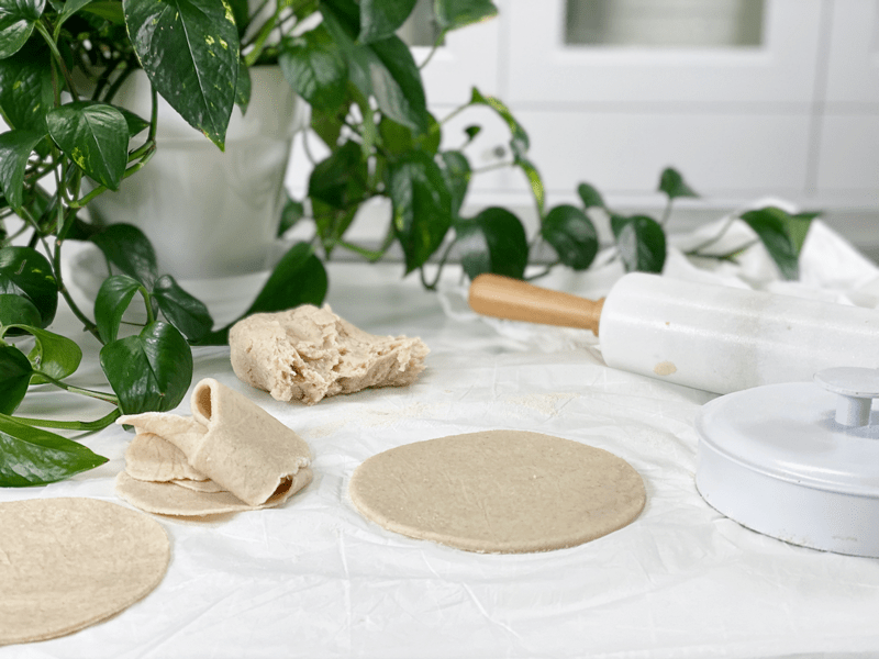 Today, I created a soft, pliable, flexible, and delicious brown rice tortilla wrap. Well, not just one tortilla but MANY. Not every recipe is a home run on the first try. Some take several renditions to get it right, and this recipe was one of them. I have many demands of my recipes: they must be vegan, gluten-free, nutritious, delicious, and they must function as intended, especially a tortilla/wrap! They can’t be cracking and falling apart. Heck no! They must hold together in order to hold a variety of fillings–this is NOT a small task.