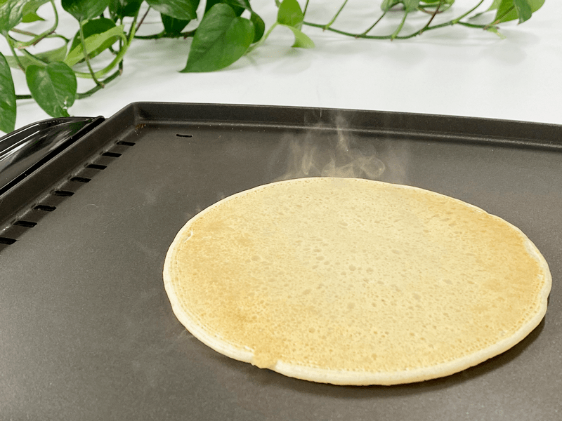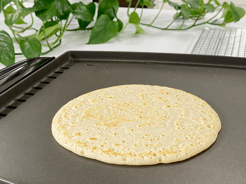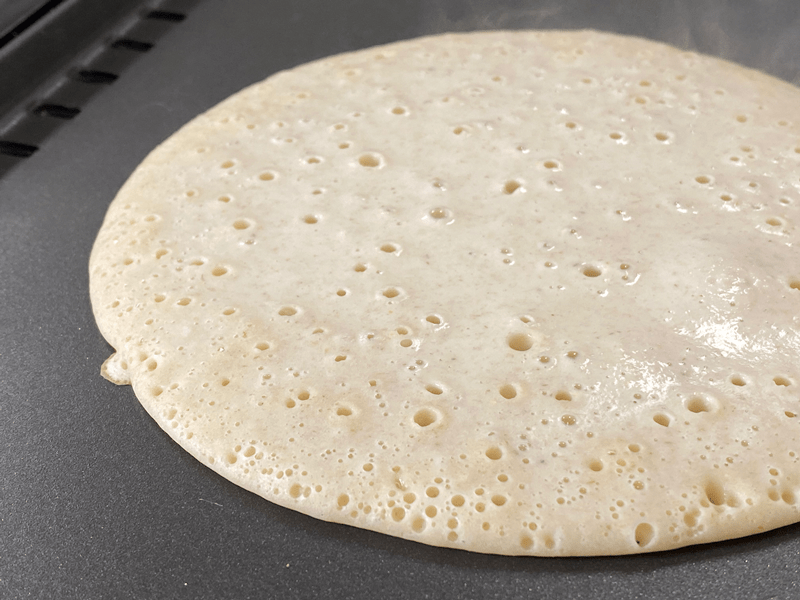 As you can see, little bubbles pop and form while it is cooking. If those bubbles stay open, it’s a good sign to try flipping it.