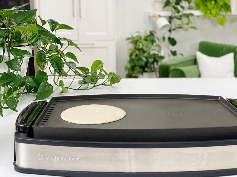 - If you aren’t concerned about making evenly sized tortillas, you can pour the batter straight from the blender carafe into the pan.