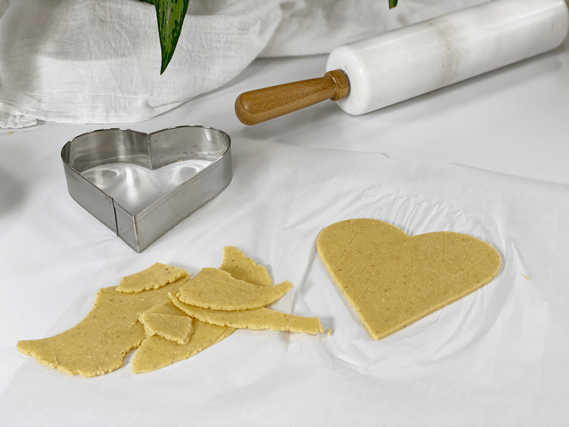 - Remove the top sheet of parchment and press the cutter into the dough, creating a perfect circle.