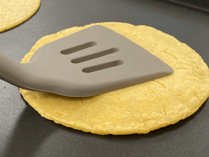 - Turn your corn tortilla over again and cook for another 15 seconds.