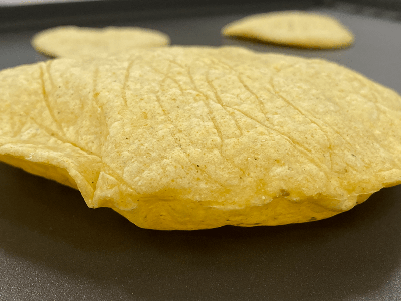 To help activate the puffing action, press the complete tortilla down flat.