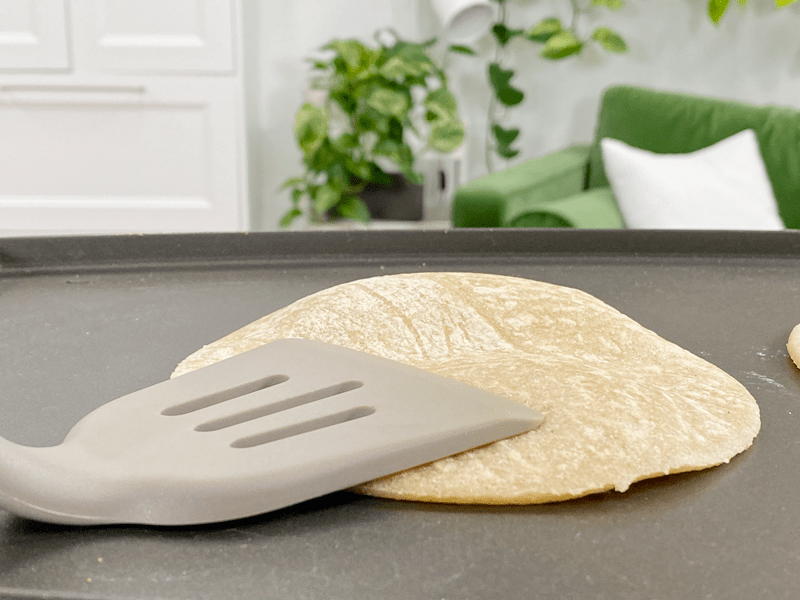 - Place the tortilla on the preheated surface. No oil should be needed.