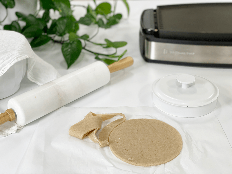 - You can use anything to cut the circular shapes. I used a storage container lid. If you don’t want to deal with using a cutter, roll them out freestyle and cook them as-is.
