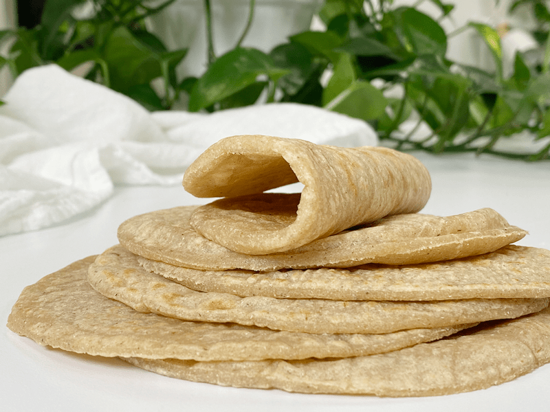 Gluten-free, nut-free, grain-free, oil-free, fat-free, soy-free, sugar-free tortillas! Use these Sorghum and Cassava Tortillas as a bread substitute. Load them with veggies, guacamole, hummus, vegan cheese, or whatever your favorite spread may be. They will stand up to anything you throw at them, with no worries about them falling apart or tearing. They are flexible, bendable, rollable tortillas that have a mildly nutty flavor —a little reminiscent of flour tortillas, if you ask me.