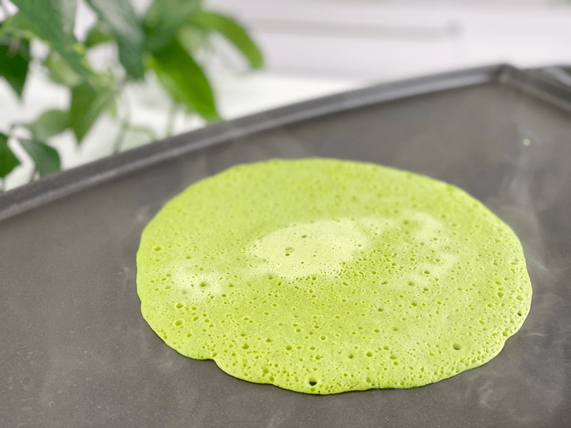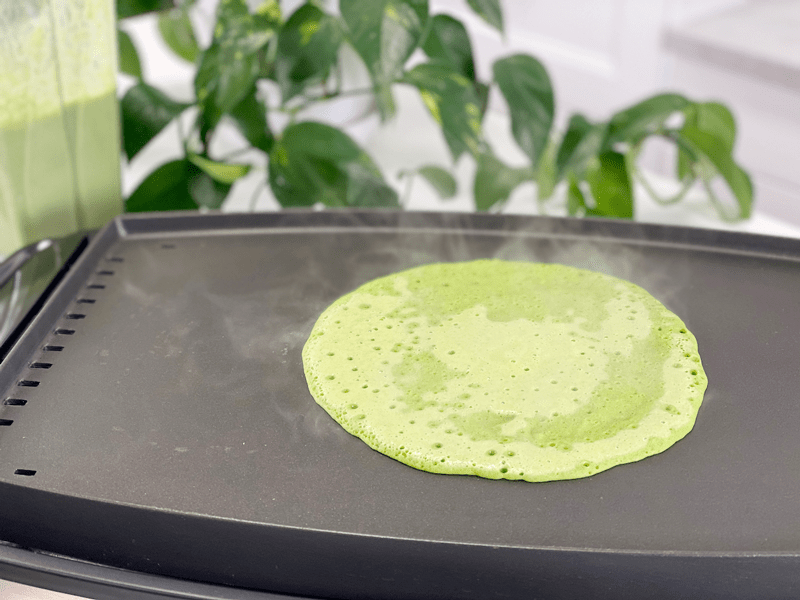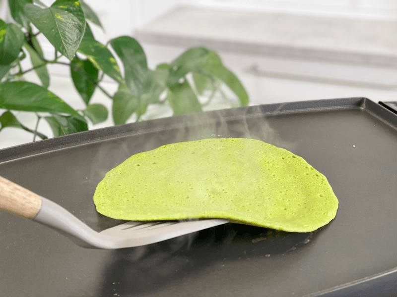 - While cooking on the first side, it goes from lime green to a darker green when ready to flip. This process takes 2 minutes.