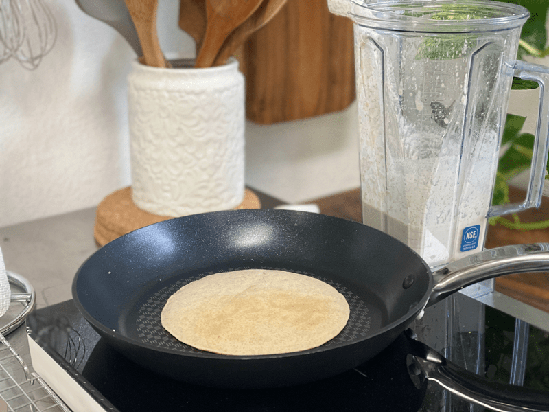 - If you aren’t concerned about making evenly sized tortillas, you can pour the batter straight from the blender carafe into the pan.