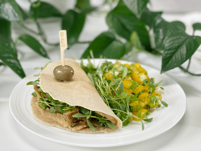 When it comes to creating recipes, there is always a little science that goes on in the background, especially when it comes to cooking or baking gluten-free “bread-like” wraps. Gluten-free flours are a blessing for so many people who suffer from gluten allergens, but most of these flours require being paired up with another flour to get those gluten-protein-characteristics. Today, I used the combo of tigernut flour and oats. Let’s see what I came up with.