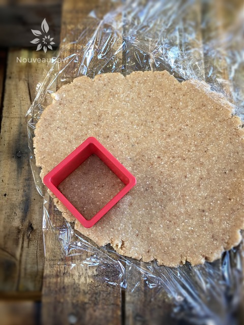 - Roll the cookie batter out to about 1/4”. I used a square cookie cutter. You can also just score the dough with a long ruler into square shapes. Whatever you find the easiest. I chose a cookie cutter to make sure that all the cookies would be the same size.