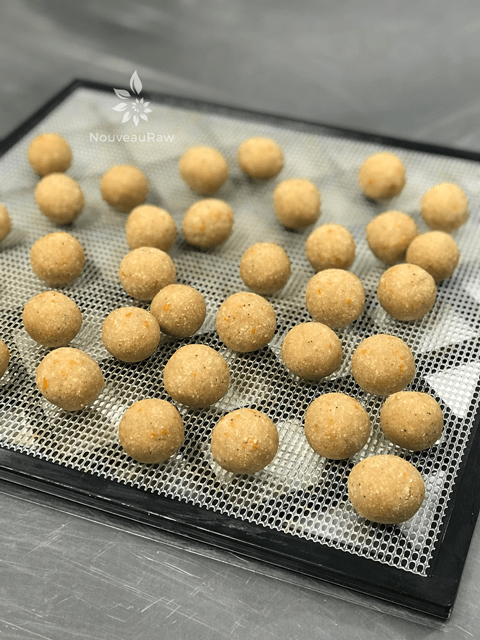 - Place cookies on the mesh sheet that comes with the dehydrator, setting the temp at 145 degrees. Dry for 1 hour. This step is to only create a firmer outside and to warm them for eating (if desired, not required).
