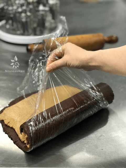 When the time comes to rolling the two layers together into a log shape, make sure you roll it even and tight. This will help eliminate a hole from forming in the center of the cookie. If you notice a hole running down the center of the log when slicing it, it’s because you didn’t roll it tight enough. You then know better for next time.