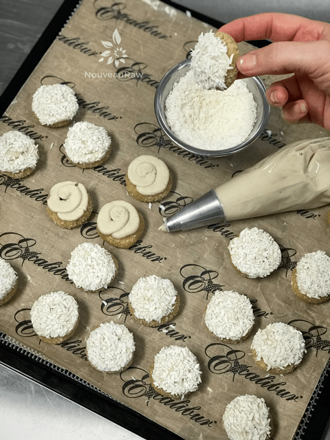 I did those today and added instead of agave coconut sugar (I pulverized it). they are in the dehydrator now and I will use as a cream in the middle your buttercup coffee cream. It was delicious and I still have some from the weekend.