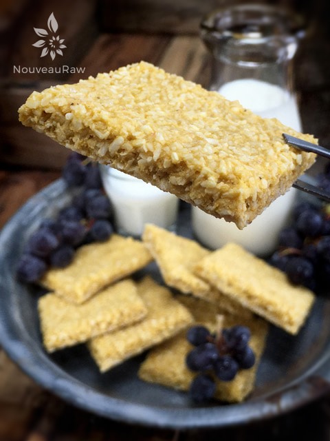 You are going to love these simple crackers. Not only are they balanced perfectly in flavor, but they also make for a healthy snack. Best enjoyed alone. No need to slather on any further competing flavors. They are firm, crunchy, light and airy. And in case you forgot…. raw, vegan, gluten-free, nut-free, seed-free, soy-free, no added sugars… oh, grain-free! Don’t think “BORING!” With one bite you will soon realize that your mouth isn’t watering – it’s crying tears of joy. With love and blessings, amie sue