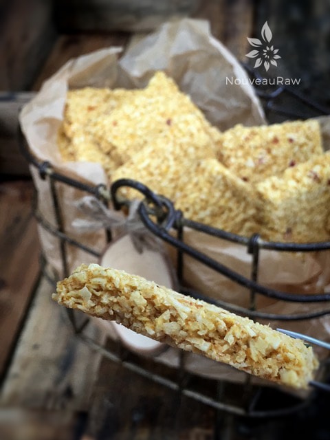 These crackers are light, airy, super crunchy and crispy, have a wonderful aroma, and a beautiful pale “orangesicle” color. I find that these fruit sweetened, coconut based, nut-free crackers taste the best all on their own. Their simple flavor inspires great appreciation. Well, I need to get back in the kitchen… I did, however, purchase some apples (!), and I can’t wait to create something with them too. hehe With love and blessings, amie sue
